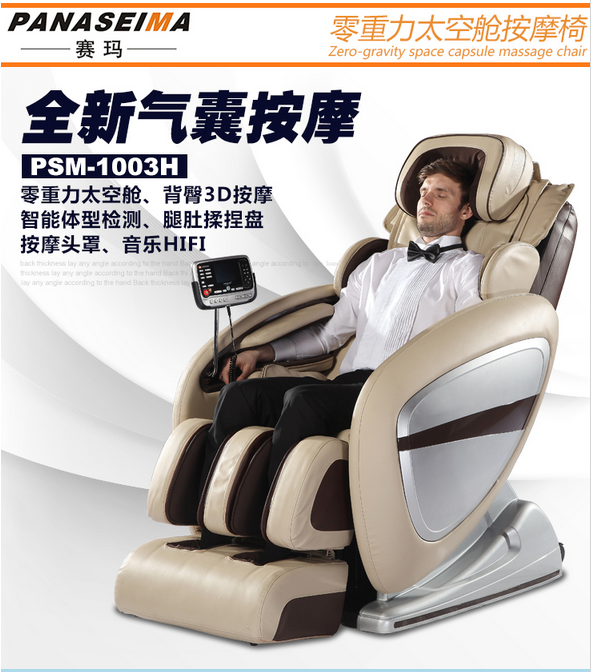 一臺(tái)零重力按摩椅相當(dāng)于6個(gè)機(jī)器人!1003H是一款從頭到腳都有按摩的3D零重力按摩椅。還可以插上我們的手機(jī)播放音樂哦!讓我們的身心同時(shí)得到放松。他的按摩手法有揉捏、推拿、敲打、指壓、氣壓等。按摩可以讓我們的身心得到釋放,可以瓦解壓力、緩解酸痛、釋放疲勞、消除緊繃、擺脫脂肪等。賽按摩椅——您值得擁有!