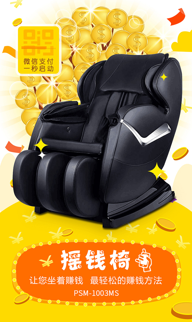 免費(fèi)擺放;每平方米輕松月入幾千元至幾萬(wàn)元;微信支付,一鍵啟動(dòng),10分鐘消除疲勞……