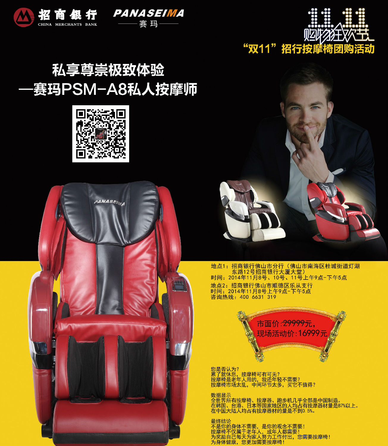 掃一掃!賽瑪按摩椅團(tuán)購(gòu)活動(dòng),引爆“雙11”購(gòu)物狂歡節(jié)掃一掃!
