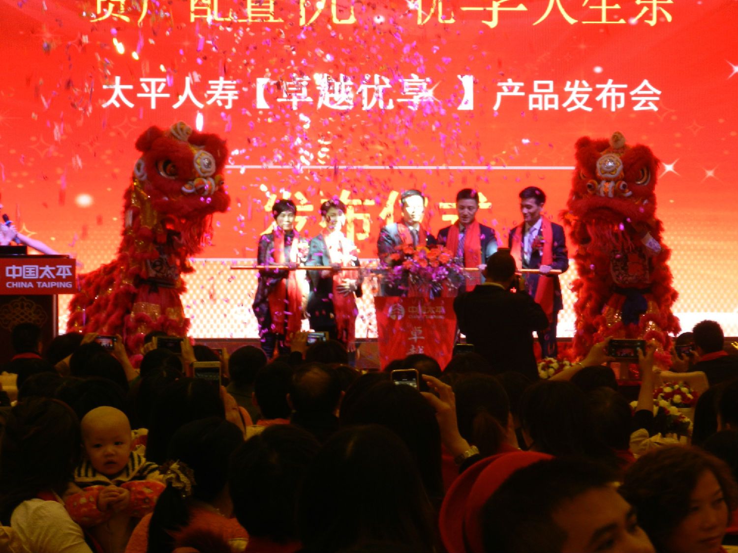 中國太平保險(xiǎn)佛山分公司1215號(hào)在順德龍江鎮(zhèn)祿福酒店舉行了新品發(fā)布銷售會(huì);此次參席有佛山五區(qū)的高端客戶、各企業(yè)主、各界成功人士共500余人參加了會(huì)議。