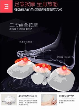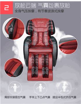 睡前享受緩慢深層按摩,利于放松身心,能讓您更早入睡,提高睡眠質(zhì)量;靜音按摩椅,整個(gè)產(chǎn)品低噪音設(shè)計(jì);整體成型式SL型超長(zhǎng)導(dǎo)軌,長(zhǎng)達(dá)135CM;零重力舒適躺姿;手臂氣囊按摩;腳底浮滾輪按摩